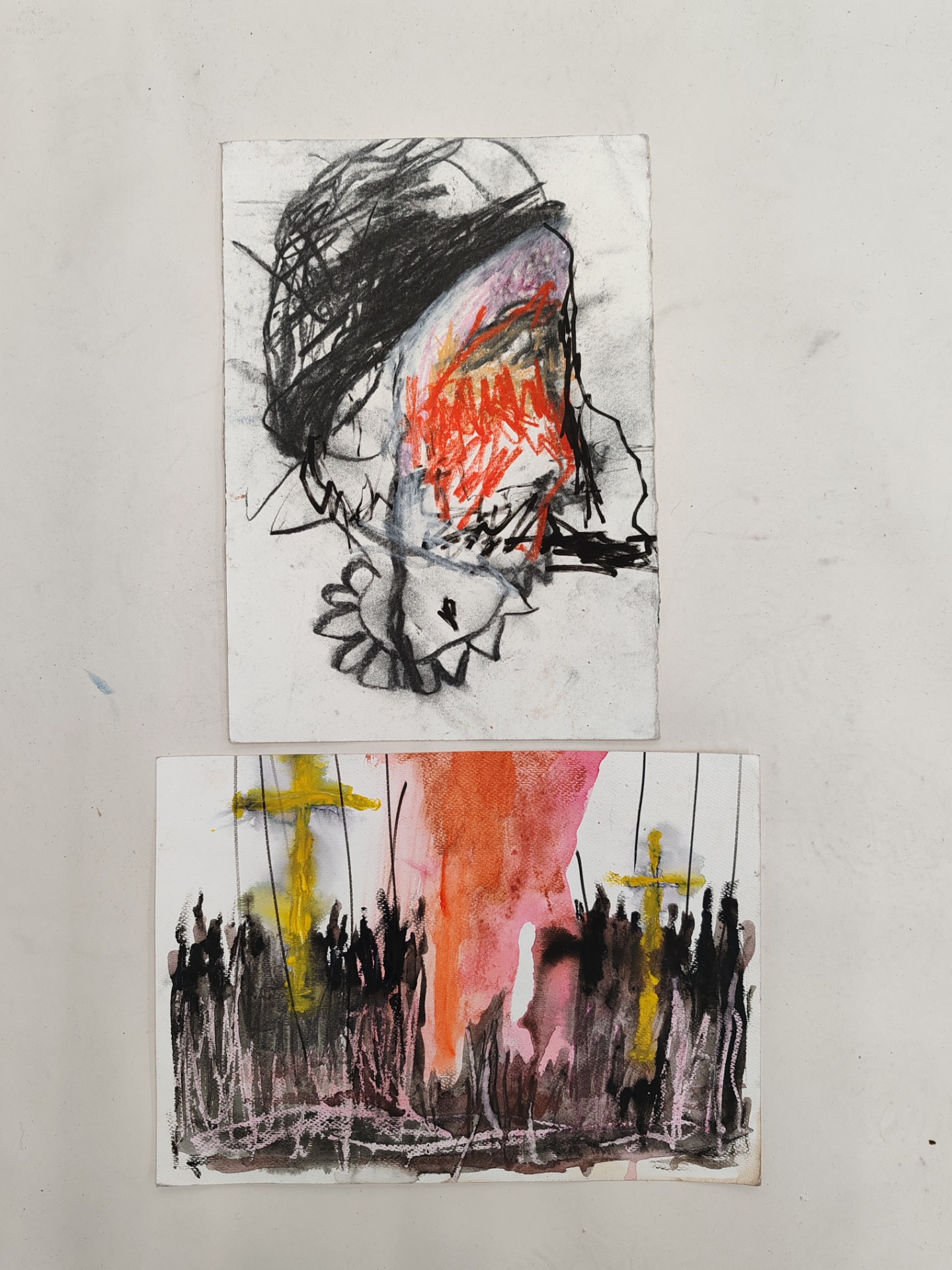 "Nimetön / Untitled", 2022 - 2025, mixed media on paper
