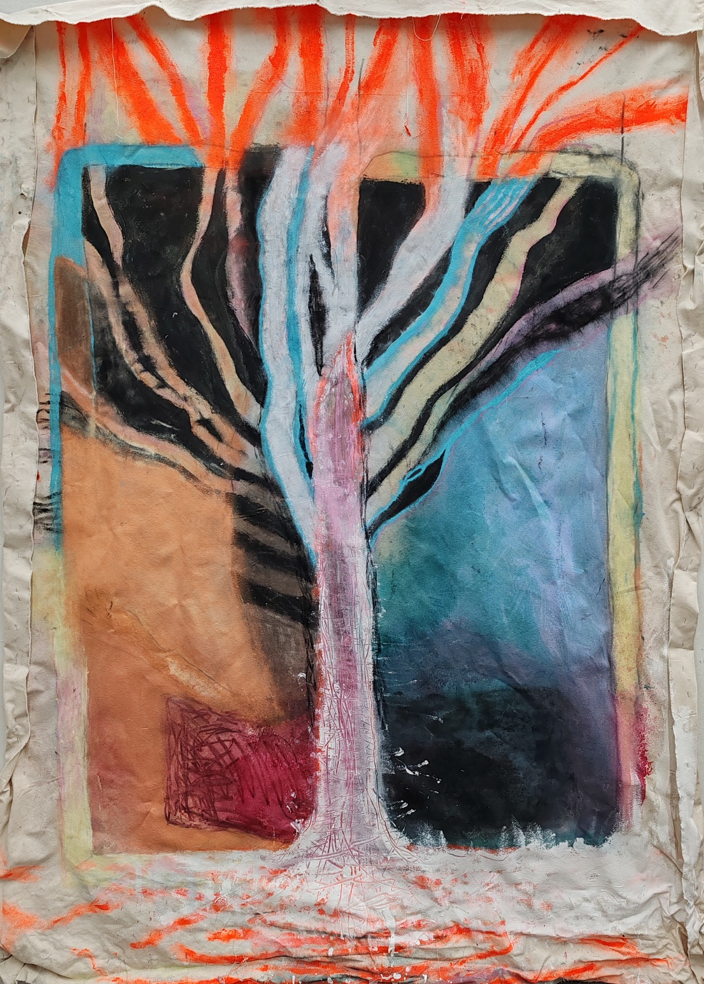 sekatekniikka kankaalle, 280 x 195cm