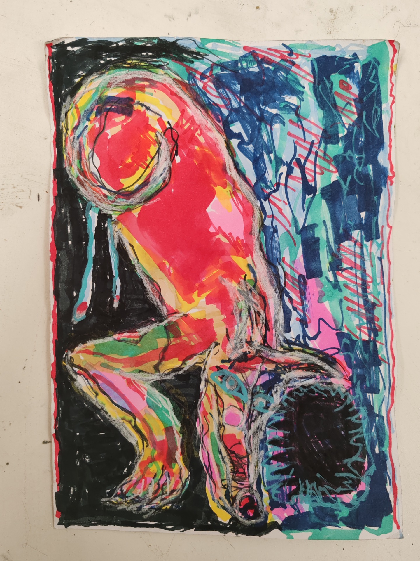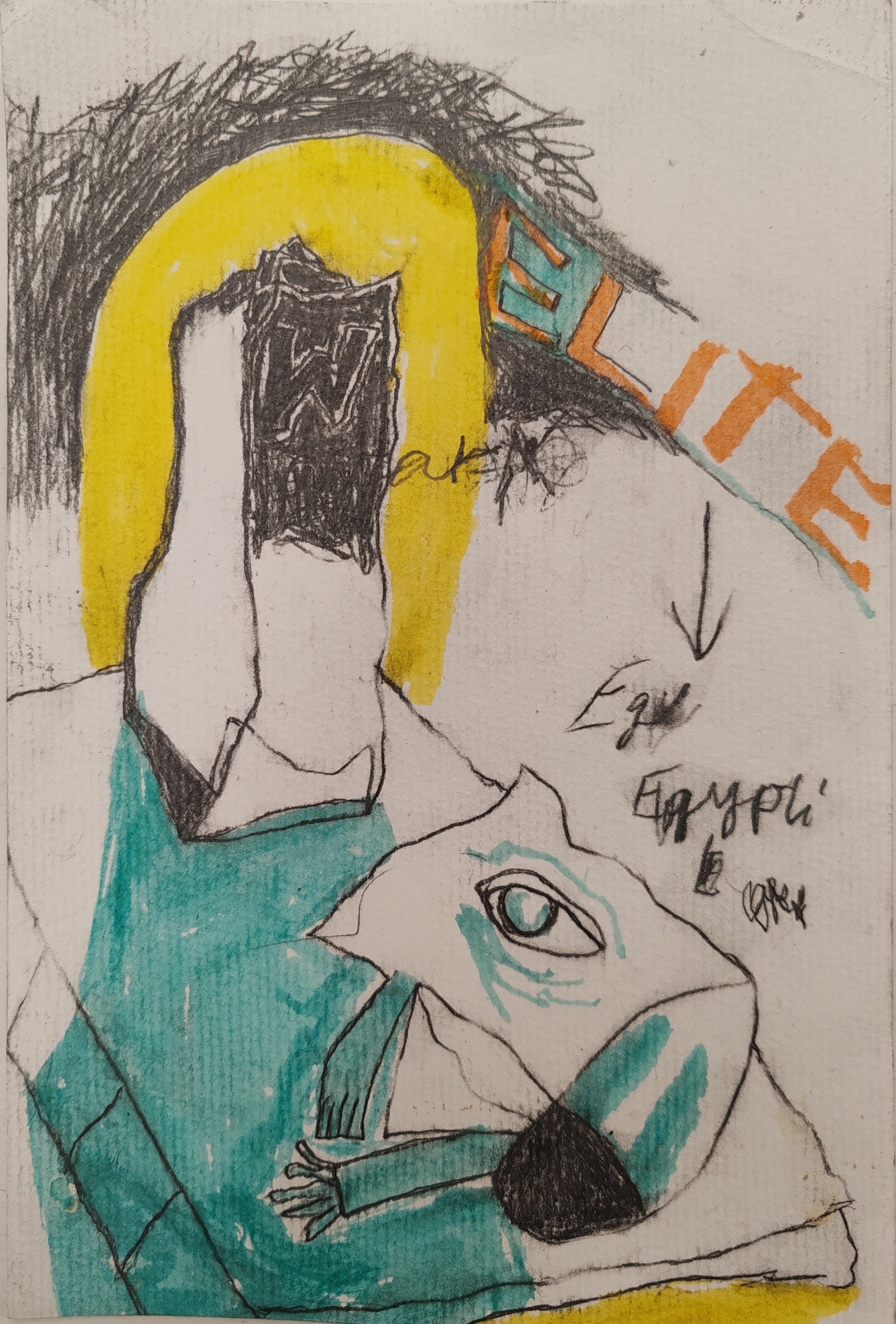 "Yritys humanistinen", sekatekniikka paperille, A3